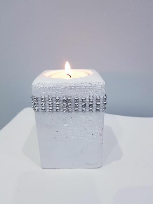 Przedmiotem sprzedaży jest biały świecznik na podgrzewacze lub inne świece. Świecznik w postaci prostokątnego klocka. ...
